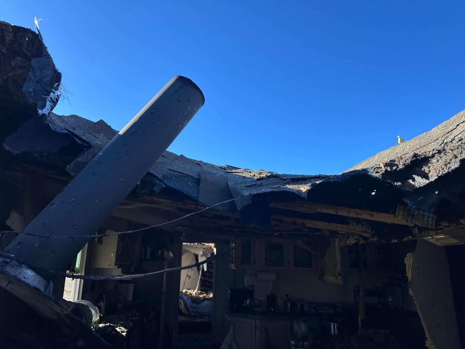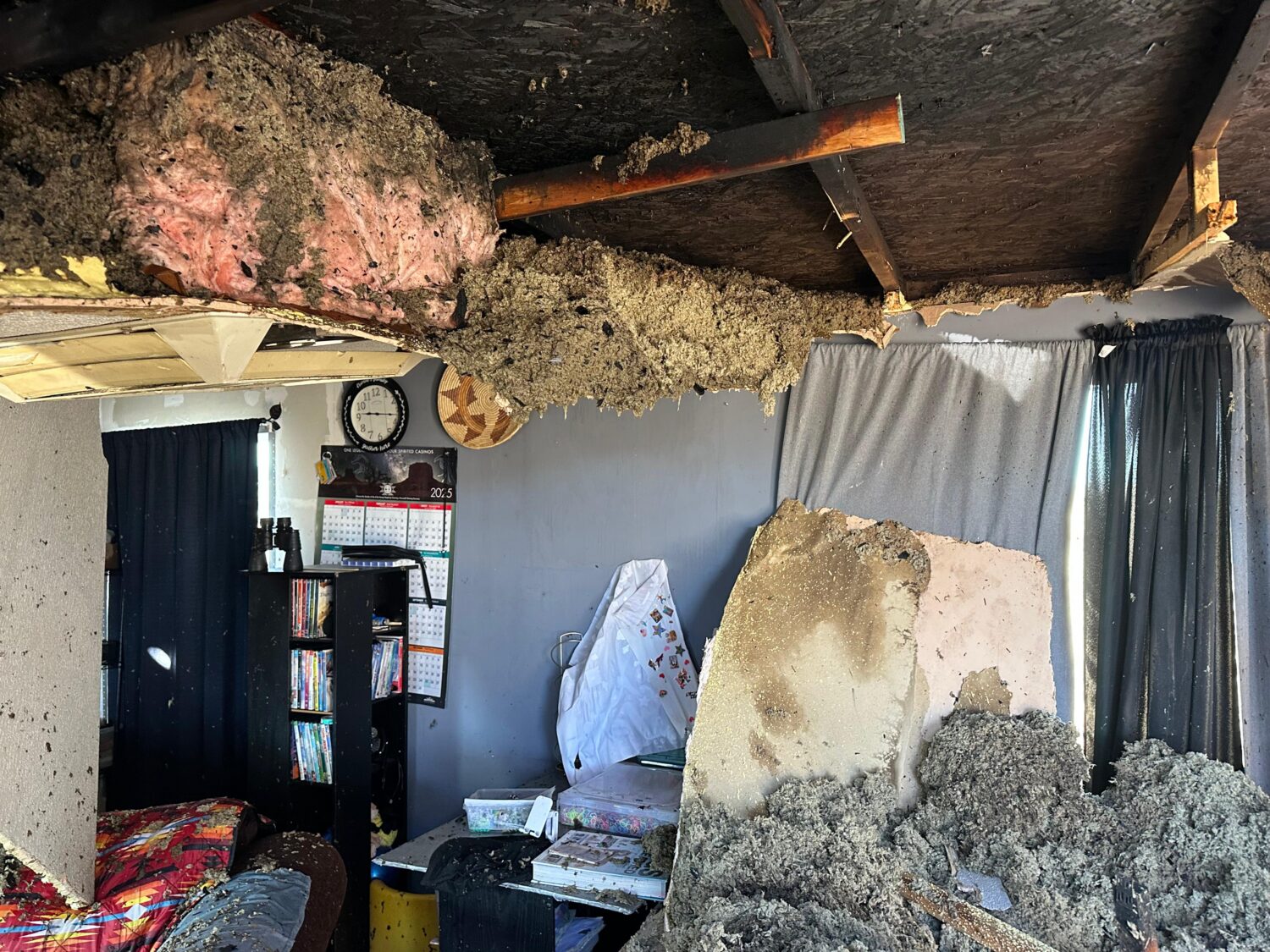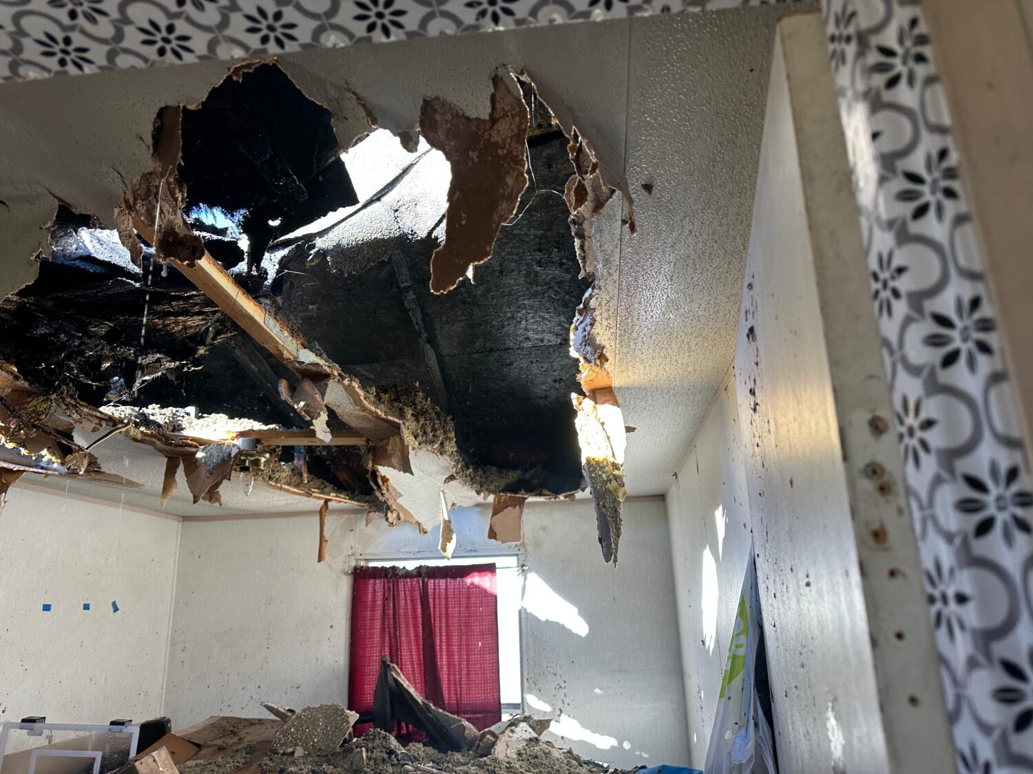 Arlene Augustine (AA): Well, on the morning of Saturday [November 22, 2025], I was working, and I took my daughter with me. I set the fire at 5:00 a.m., and I went back into the room; there was a heater. It was warm there, and about 20 minutes later, I came out thinking it should be warm now, so I’d better make some coffee. When I came out, it was smoking all over, and I couldn’t see, and I removed everything from the stove. I ran and told my daughter, “Get up, my house is on fire.” Then she put on her clothes, and I got a ladder and tried to [extinguish the fire]. She was giving me water. We tried to put it out ourselves, but it had already spread too much through the ceiling. Then I told her, “Call 911 and call your uncle.” I couldn’t think of anything. I left my purse and everything in there, and the firetruck came right away, like 25 minutes later, and my brother came over. I tried to help him, but it was just too late. They put out the front part, but it started again and went all the way around fast, and they called the electric company, and I guess they turned off the electricity. They did a lot of water damage. Later, the boys — my husband’s brothers — somehow mopped it up. I guess they thought I was going to be living there, but I said, “I don’t want to live in there. It’s smoking, and my daughter also has asthma. I don’t want her to live there.”