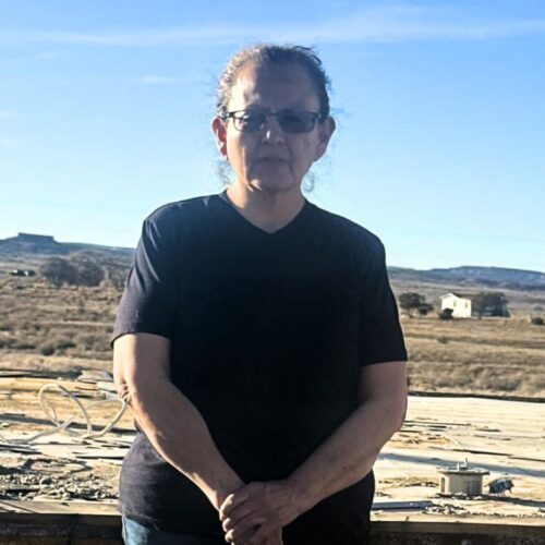 AA: [She gets emotional] I’m sorry. It just makes me emotional. When I think about my home, or when I try to come to terms with accepting what happened, a home is my heart. It’s my mind, a place where I eat and where I come in and sleep. So, I don’t have any. A part of me is shattered, especially my heart. I prayed about my fire, and before my house burned down, our trailer was really old, so I had a fire before this. In between, there’s probably 10 years — the same thing from the roof caught fire. I had lost my home before. This is the second one. And so, St. Bonaventure [Indian Mission & School], the one that I bought a trailer from (…), it was okay to live in. But when my house burned down, it took a lot out of me. It’s really emotional when I talk about my home. Now we really have no place to go, but I always pray to God. Before the house burned down, I used to stand outside at five in the morning or six, giving offerings to the Holy People, the Morning Gods. I tell them one day I’m going to have a beautiful home. I’m 62. I want to have a nice home before I retire and enjoy my life. I never really had a home either built or something new. I don’t know if it was a message from God that now I can start from the ground up, even a small shack house. I think about that. When I think of home, it’s happiness (…), but now I have nothing.
